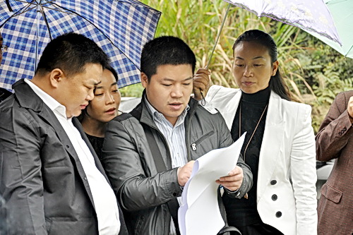 图为:实地察看污水处理厂的选址。