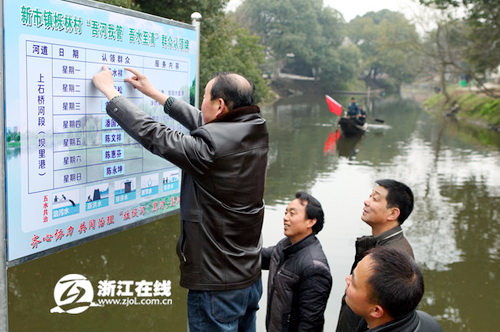 图为:浙江省湖州市德清县新市镇栎林村群众认领河道。