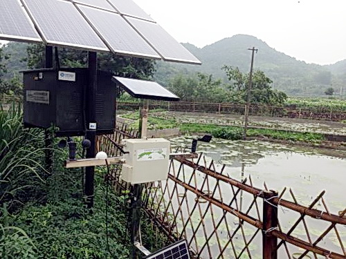 出水管尽头茂密的绿地底下就是污水的物理降解池,在植物、微生物等共同作用下使得生活污水重见清澈,循环再利用于灌溉等。目前环溪村共有9个污水处理池(其中两个更是利用太阳能来供电),附近共81户370位村民的生活污水重见清澈。为了让污水治理的数据在第一时间上传到桐庐县环保局,中国移动特意在桐庐境内设置六个”农村污水第三方可视化智能检测物联网运维管理标杆试点”,其中一个就在环溪村。