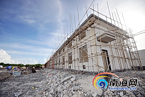 图为:海南省三沙市西沙永兴岛污水处理厂的综合楼、鼓风机房、发电机房等已封顶。
