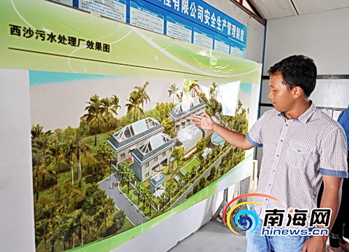 图为:海南省三沙市西沙永兴岛污水处理厂将于今年10月投入使用,工作人员讲解效果。