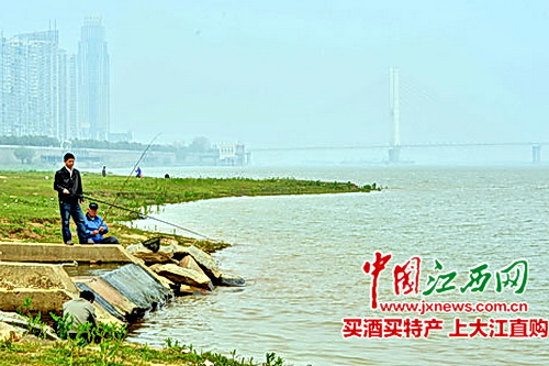 图为:赣江排污口的垂钓者。