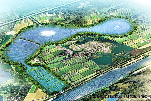 图为:金泽水源湖鸟瞰图。(资料图片来源:上海市水利工程设计研究院有限公司)