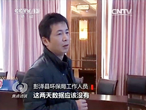 环保局负责人告诉记者,通过实时在线监控他们可以掌握化工厂排出的污水是否合格达标,记者提出想看一下当天华孚印染厂的排污监测情况,于是跟随环保局工作人员来到了在线监测大厅,但工作人员告诉记者:“这两天数据没有,自动监控已经出故障了,掉线了。”