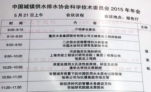 (水业中国网上海工作站5月21日讯)中国城镇供水排水协会科学技术委员会2015年年会今天上午在重庆市长城酒店召开。今天上午的主旨发言由深圳水务集团张金松总工程师(中国水协科技委副主任)主持;并由重庆水务集团股份有限公司王峰青总工程师致辞。今天下午的会议将分别围绕“饮用水水质安全保障技术”、“中国城镇污水处理厂工艺提标改造及污泥处理处置技术”和“智慧水务”三部分主题内容展开交流。同时,在“智慧水务”论坛中将对《城镇供水、污水处理厂自动化技术指南》进行宣贯和邀请阿里巴巴专家作《移动互联网在水务行业的应用》的专题报告。