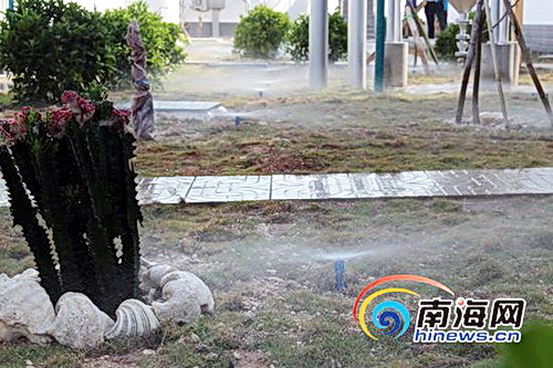 图为:处理后的中水将用于岛上的绿化浇灌和建筑施工。