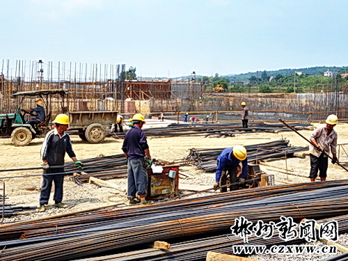 (水业中国网上海工作站8月10日讯)2015年8月6日,建设者们冒着高温在苏仙区卜里坪长冲铺村的市重点项目第四污水处理厂进行生物池的施工作业。据施工方介绍,该项目占地面积283亩,一期总投资约2.42亿元,目前已完成工程总量的70%,预计10月将完成主体工程建设并试运营,12月正式运营,日处理污水6万吨,出水水质达国家规定的一级A标准。