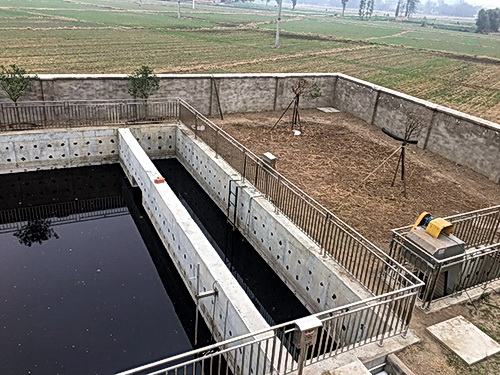 图为:四川省德阳市广汉市连山镇污水处理站一角。