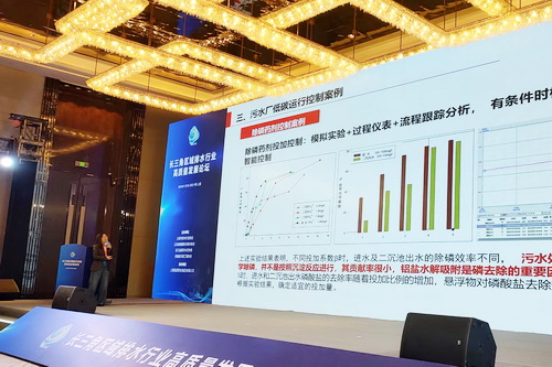 图为:吕贞技术总监“双碳背景下污水处理减污降碳协同发展分论坛”演讲主题为《双碳高标准背景下城镇污水处理厂运行控制策略》。